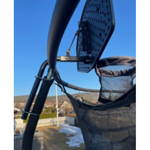 Premium Basketballkurv til trampoline fra JumpKing. Kan festes på sikkerhetsstolpen på de fleste trampoliner. 15 cm ball og pumpe følger med.